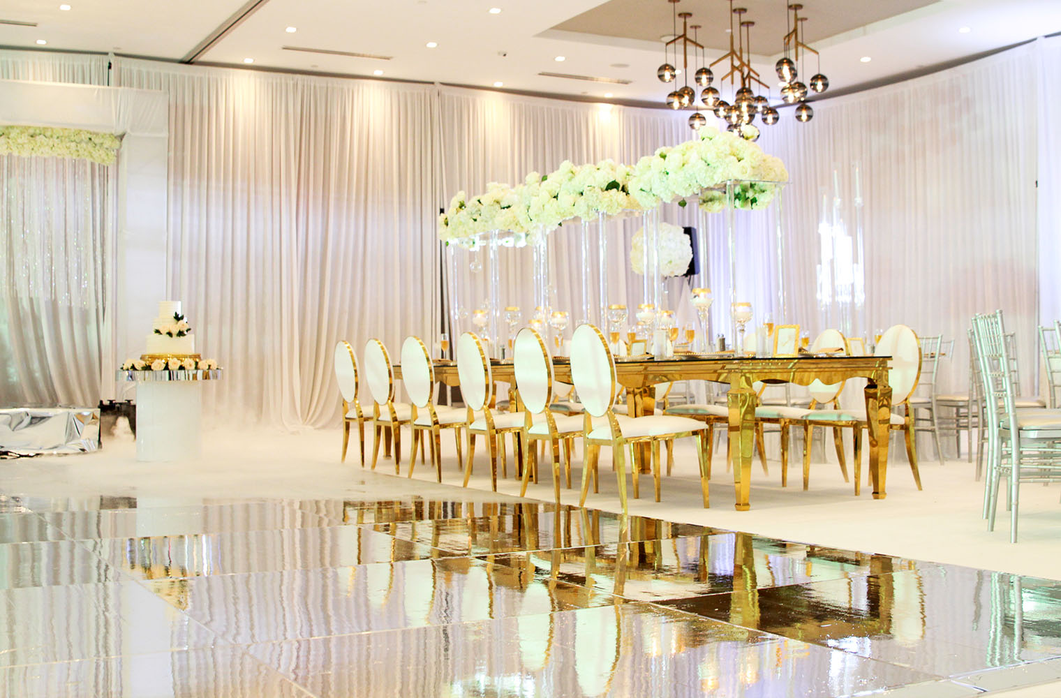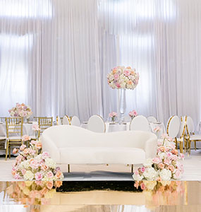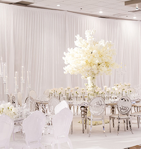 We offer various colors and sizes of drapery services to match your vision for your event. Our draping services include Backdrop drapery, Wall to wall drapery up to 20ft high ceilings.