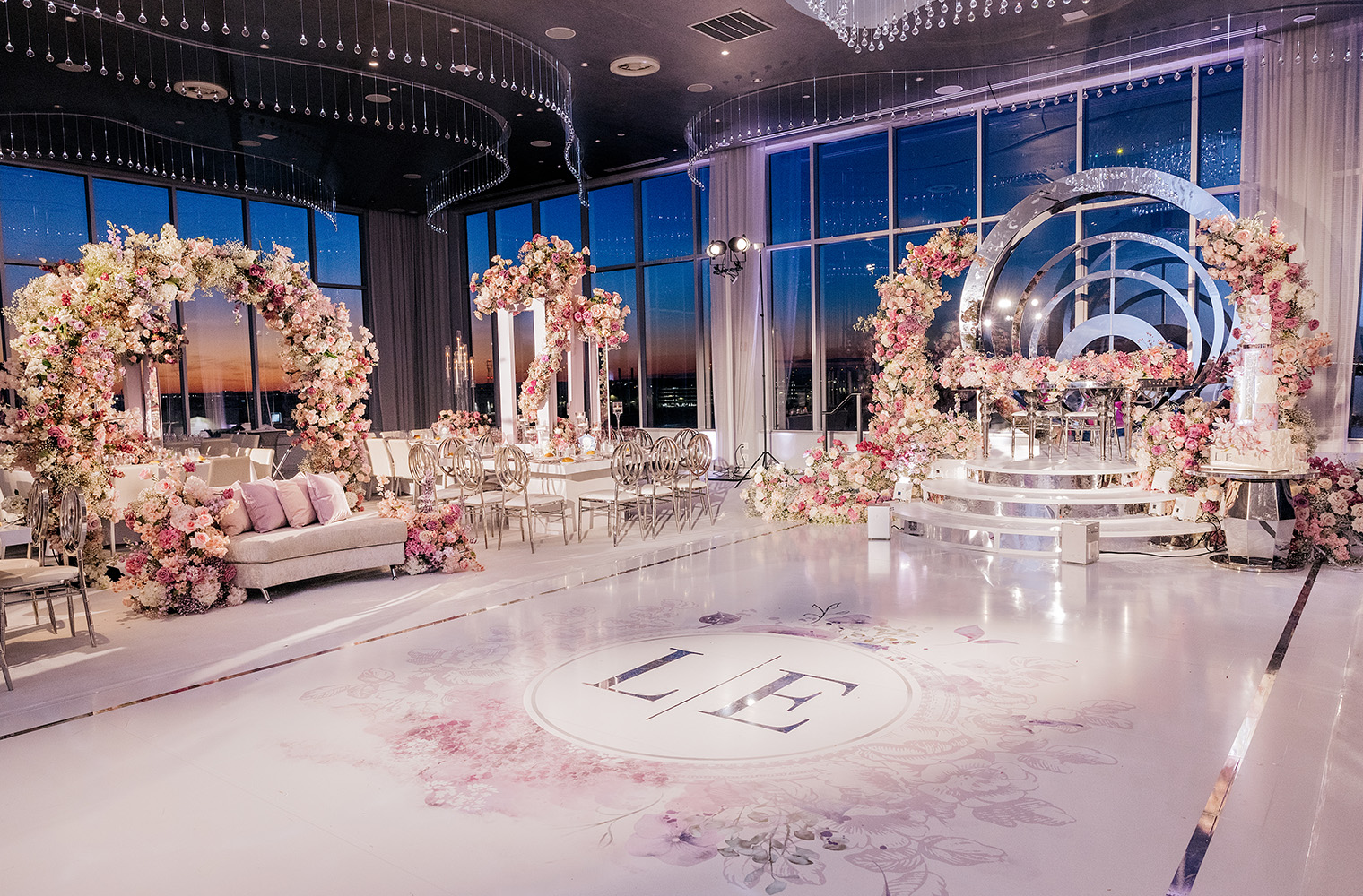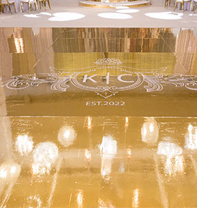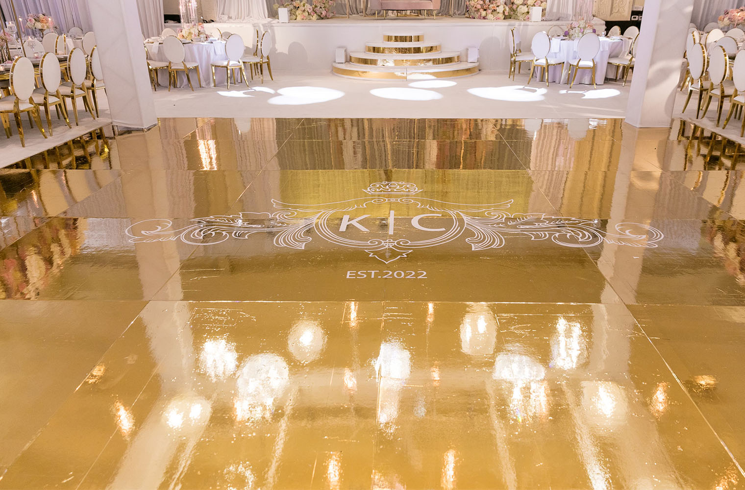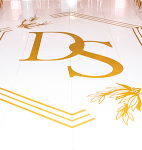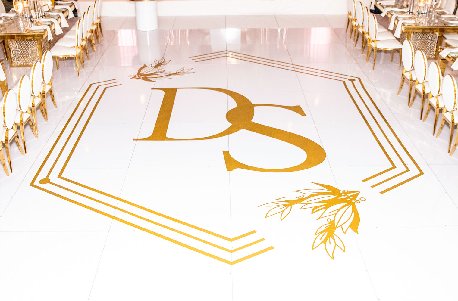 We offer a wide range of dance floor wraps in a variety of colors and styles. Our flooring services include aisle runners carpeting, vinyls, dance floor rental & installation. We specialize in monogram prints and floor decals.