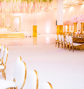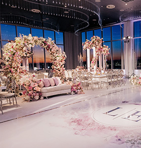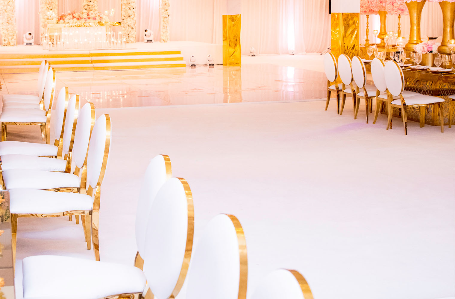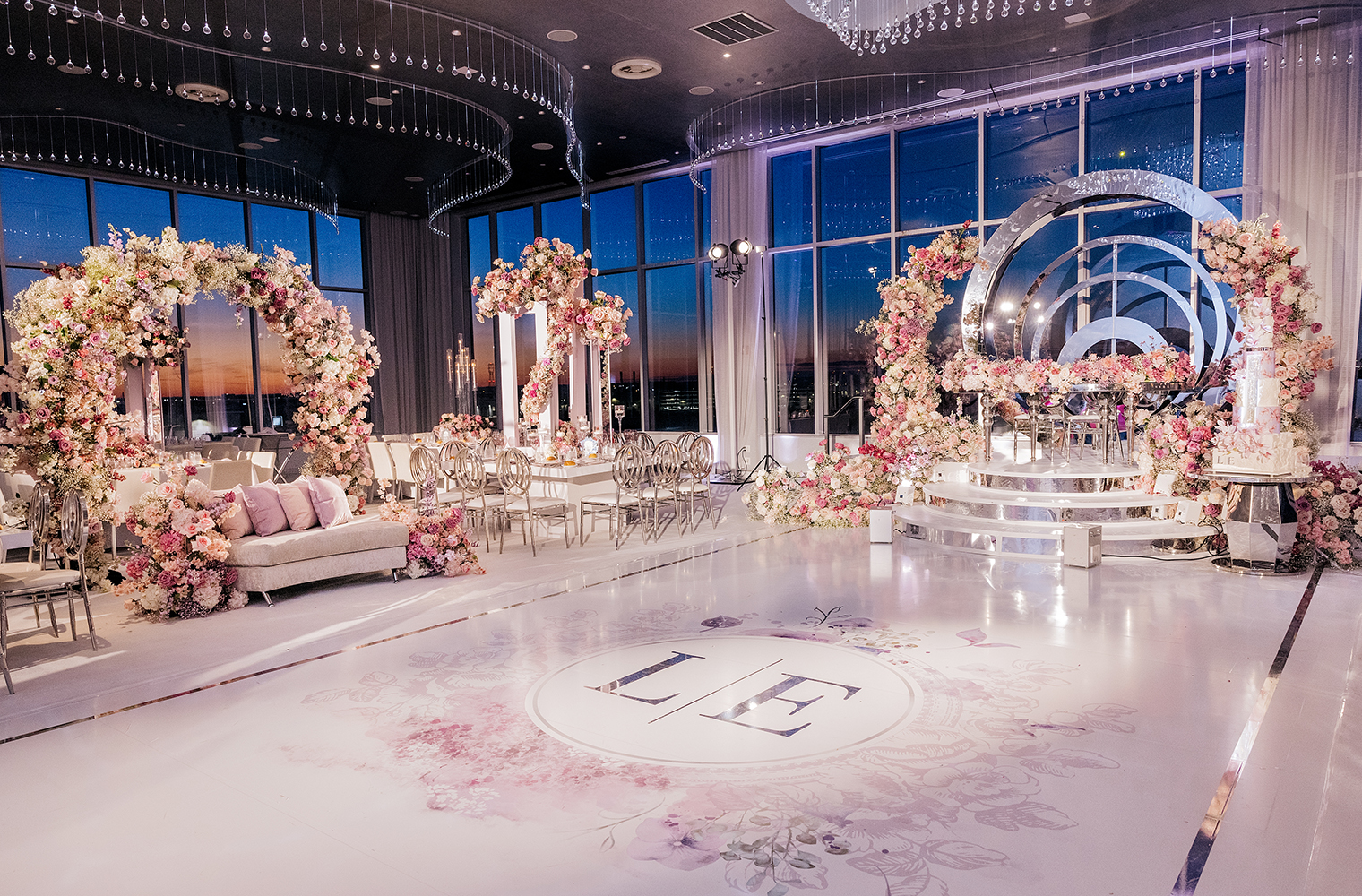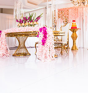 We offer a wide range of dance floor wraps in a variety of colors and styles. Our flooring services include aisle runners carpeting, vinyls, dance floor rental & installation. We specialize in monogram prints and floor decals.